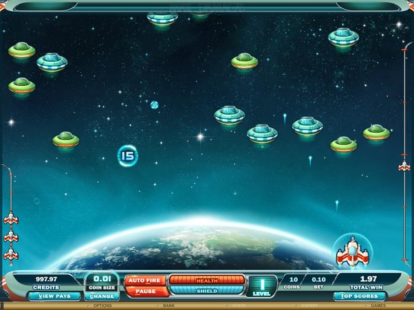 For players who enjoy the action of Microgaming slots in online casinos, the company has developed a game that offers a great twist and much action. Max Damage and the Alien Attack is classified as a video slot, but the game is played in a completely different way than any other slot from Microgaming. Instead of playing like a typical video slot, Max Damage is more of an arcade style game. For any player that has ever enjoyed a traditional arcade game like Space Invaders or Defender, this game will surely entertain and reward for hours on end.