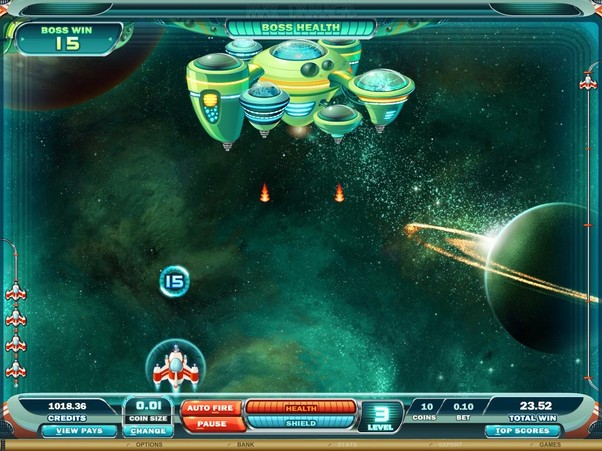 There are a total of nine levels in the game, all offering the chance to earn many game credits. The game does have some great features, including Boosters, shields and free play rounds. The game also has a Top Scores Leaderboard.